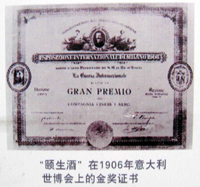 在1915年美國(guó)舊金山巴拿馬太平洋世博會(huì)期間,共有25000多個(gè)展品獲獎(jiǎng)。其中,中國(guó)展品獲獎(jiǎng)?wù)?200多枚,為各國(guó)獲獎(jiǎng)之冠。其中,茅臺(tái)酒直接由高級(jí)評(píng)審委員會(huì)授予榮譽(yù)勛章金獎(jiǎng)。自此,中國(guó)的茅臺(tái)酒揚(yáng)名世界。