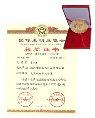熱烈祝賀交互式手寫投影幕(深圳市東泰和科技有限公司獨家研發(fā))榮獲第七屆國際發(fā)明展覽會暨國際教學(xué)新儀器新設(shè)備展覽會發(fā)明金獎。本屆展會由中國發(fā)明協(xié)會、中國教育裝備行業(yè)協(xié)會、發(fā)明者協(xié)會國際聯(lián)合會、江蘇省科技廳、蘇州市人民政府聯(lián)合主辦,江蘇省知識產(chǎn)業(yè)局、江蘇省教育廳、昆山市人民政府承辦。吸引近30多個國家和地區(qū)的3000多個項目參展,是近年來國內(nèi)規(guī)模最大的一次發(fā)明專利成果展示活動。展示會本著“國際、科技、創(chuàng)新、發(fā)明”的主題,貫徹“提高自主創(chuàng)新能力,建設(shè)創(chuàng)新型國家”的戰(zhàn)略方針,落實國家知識產(chǎn)權(quán)戰(zhàn)略,提高教育裝備行業(yè)的自主創(chuàng)新能力,促進(jìn)我國教育裝備行業(yè)與國際同行業(yè)的相互學(xué)習(xí)、交流與合作。