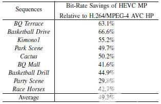 表1.H.265與H.264的主觀效果比較[1]
