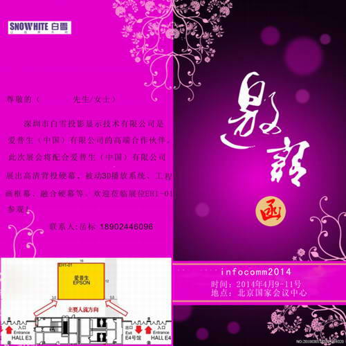 經過近幾年的發(fā)展,白雪投影幕在中國高端投影銀幕市場占有較大份額。與諸多世界一流投影企業(yè)合作,緊跟世界投影技術的發(fā)展,為客戶提供完美的視覺享受。此次Infocomm China 2014展會中,深圳市白雪投影顯示技術有限公司作為愛普生(中國)有限公司的高端合作伙伴,將配合愛普生(中國)有限公司展出高清背投硬幕、被動3D播放系統、工程畫框幕、融合硬幕等,這種強強聯手的合作方式,必將共“贏”市場。歡迎各位蒞臨展位EH1-01。