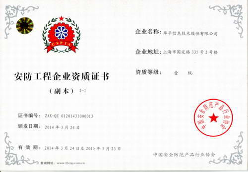 近日,華平信息技術(shù)股份有限公司已通過(guò)公示,正式獲得由中國(guó)安全防范產(chǎn)品行業(yè)協(xié)會(huì)頒發(fā)的《安防工程企業(yè)資質(zhì)證書(shū)(一級(jí))》。這充分說(shuō)明華平在安全防范工程建設(shè)領(lǐng)域具備較高的技術(shù)實(shí)力和管理水平,該資質(zhì)證書(shū)將有力支撐公司在全國(guó)范圍內(nèi)開(kāi)展安防工程業(yè)務(wù),為華平股份的發(fā)展提供更廣闊的空間。
