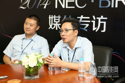 2014年8月27日,2014年度北京國際廣播電影電視設備展覽會在京召開,作為擁有DLP數(shù)字影院牌照的顯示巨擘,NEC攜旗下最新激光光源數(shù)字電影放映機——NC1100L出席了本次盛會,新光源產(chǎn)品的全方位展示為NEC展區(qū)贏得了極高人氣的同時,也引起了與會媒體、業(yè)內(nèi)人士的廣泛關注。 BIRTV展會揭幕當天,NEC(中國)有限公司數(shù)字電影機銷售事業(yè)部副總經(jīng)理李敬、顯示產(chǎn)品銷售支持本部副總經(jīng)理劉崢、顯示產(chǎn)品銷售支持本部產(chǎn)品技術部部長崔永新攜手接受了媒體采訪,就NEC數(shù)字電影放映機市場、產(chǎn)品、技術、售后服務等系列話題進行了交流。