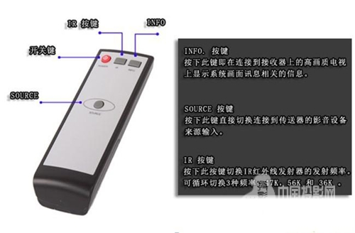 WHD-200U的遙控器共有四個(gè)按鍵,即:開關(guān)鍵、IR按鍵、INFO.按鍵和SOURCE按鍵。設(shè)計(jì)簡(jiǎn)潔,操作簡(jiǎn)單。