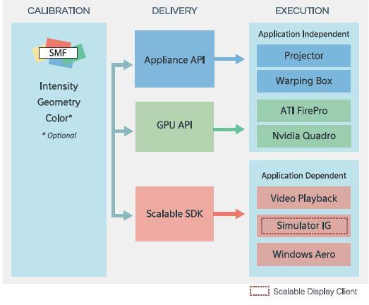 Scalable作為全球首款基于攝像機(jī)的自動(dòng)校準(zhǔn)軟件,對(duì)于復(fù)雜的投影系統(tǒng),例如球幕、弧幕、穹幕,可以為多臺(tái)投影機(jī)計(jì)算變形融合,省去人工找點(diǎn)、校準(zhǔn)的煩惱,極大的節(jié)省了時(shí)間;并且將計(jì)算結(jié)果分發(fā)到PC陣列或者變形設(shè)備;趯@臄z像反饋技術(shù),SDM能夠計(jì)算出像素級(jí)完美的變形和融合并將結(jié)果存儲(chǔ)。同時(shí)擁有一鍵重新校準(zhǔn)功能,后期調(diào)整也是非常方便。