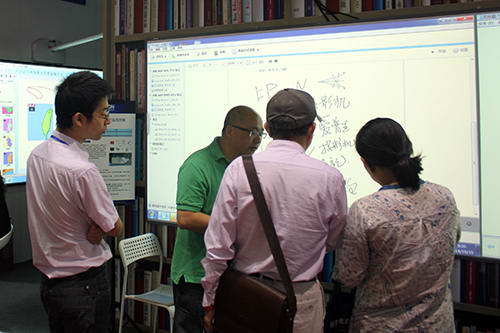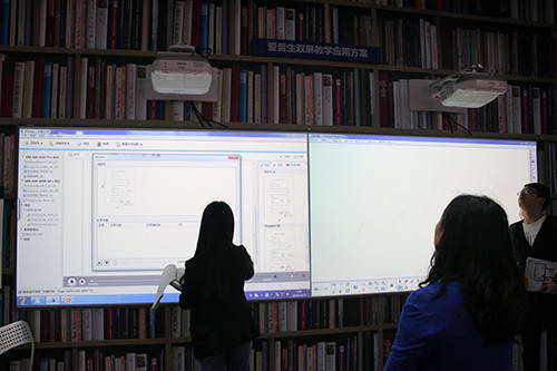現(xiàn)代信息化教學(xué)對互動性要求越來越高,愛普生為了滿足用戶的需求。展示了由兩臺愛普生CB-595Wi組成的超短焦遠(yuǎn)程互動教學(xué)方案。此套方案由兩臺CB-595Wi投影機(jī),搭建網(wǎng)絡(luò)環(huán)境后,通過安裝Epson Network Projection軟件,可實現(xiàn)遠(yuǎn)程互動,兩地的投影內(nèi)容共享顯示,適用于多間教室及多所學(xué)校,遠(yuǎn)程教學(xué)時使用。