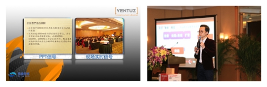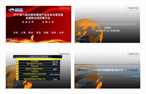 2015年4月16日,以“拓寬應(yīng)用 會隨心動”作為主題的第六屆多媒體通信產(chǎn)品及會議室設(shè)備全國聯(lián)合巡回展示會在沈陽起航。本屆巡回展示會將在沈陽、上海、南京、深圳、成都、西安、北京舉辦。本屆會議,主辦方大膽創(chuàng)新,參考國際會議舉辦形式選定Ventuz特魯克多功能三維實時圖文包裝系統(tǒng)取代傳統(tǒng)單一圖文及PPT播放形式為會議帶來全新展示效果,在沈陽及上海站中特魯克三維靈動的展示方式為展商及演講人帶來靈活觸動的全新的演講形式,更加拉近與與會者的距離,完美提升會議的效果。