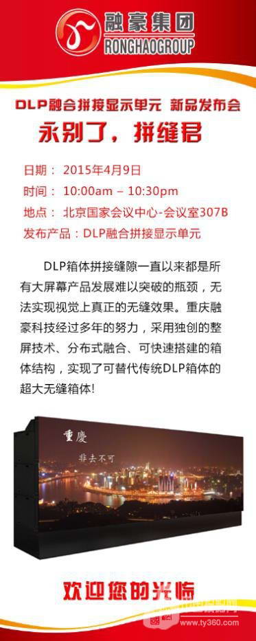 此次融豪集團(tuán)推出的DLP融合拼接顯示單元,解決了傳統(tǒng)拼接的物理拼縫、光學(xué)拼縫的瓶頸問題,采用獨(dú)創(chuàng)的整屏技術(shù),它既具有融合大屏幕的無縫高亮度的特點(diǎn),又具備DLP箱體的標(biāo)準(zhǔn)化生產(chǎn)、現(xiàn)場(chǎng)安裝維護(hù)方便的特點(diǎn),同時(shí)它采用高亮度的激光光源技術(shù),具有超長(zhǎng)壽命、高亮度、高對(duì)比度、色彩逼真的特點(diǎn),達(dá)到世界領(lǐng)先水平。