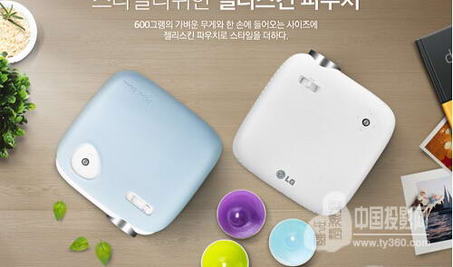 LG微型投影機PW800體積非常小巧,采用了全新的模型,外觀看上去就像鵝卵石,圓滑小巧非?蓯,三圍為:140x140x50,重量僅為600g。而且從官方透露的照片來看,有兩種色彩可選,分為淡藍色和白色,看著非常時尚。