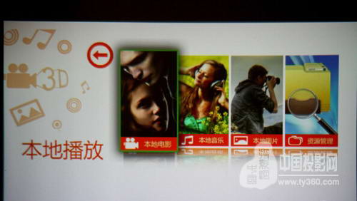 在網(wǎng)絡(luò)連接過(guò)后,我們進(jìn)行一些麗彩云投S2的內(nèi)置功能介紹,在【本地播放】中,用戶可以提取機(jī)身內(nèi)部下載的影片內(nèi)容或者存放的圖片,也可以提起外置USB優(yōu)盤(pán)中的內(nèi)容。