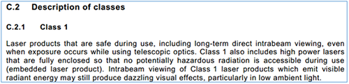 其實(shí),國際電工委員會(huì)根據(jù)激光顯示的發(fā)展要求,更新制訂了激光安全等級(jí)標(biāo)準(zhǔn)IEC60825 Edition 3.0(Safety of laser products –Part 1: Equipment classification and requirements),于2014年5月正式發(fā)布,又稱IEC60825-2014,在此標(biāo)準(zhǔn)中,IEC根據(jù)投影顯示系統(tǒng)投射或泄露出來的激光波長(180 nm-1 mm)和持續(xù)發(fā)射時(shí)間內(nèi)(>=0.25s),檢測(cè)和計(jì)算人員可接觸到的輻射量,并結(jié)合應(yīng)用領(lǐng)域把激光安全分為多個(gè)等級(jí),包括:Class 1,Class 1M,Class 1C,Class 2,Class 2M,Class 3R,Class 3B,Class 4八個(gè)等級(jí).激光安全等級(jí)認(rèn)證是歐美市場準(zhǔn)入的強(qiáng)制標(biāo)準(zhǔn)。