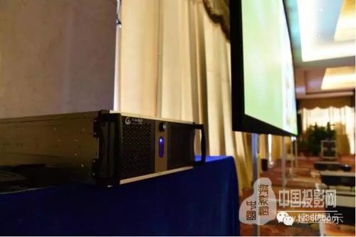 主畫面使用了1臺(tái)麗訊8000流明高清激光投影機(jī)DU8090Z、投射150寸畫面。