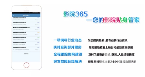 通過“影院365”這一集影院運營與商務合作的IT管理系統(tǒng),影院工作人員可以第一時間掌握影院神運輸、安裝及運營情況,這樣在影院的建設與運營過程中,可以隨時隨地了解自家所有影院運行的詳細狀況,并可以根據(jù)“影院365”中專業(yè)的影院建設信息作出及時、準確的決策。