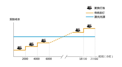 激光光源投影機(jī)的光源壽命往往都在20000小時(shí)以上,相當(dāng)于傳統(tǒng)汞燈光源壽命的5~6倍以上,節(jié)省了更換燈泡過程中的物料、時(shí)間和人力成本;