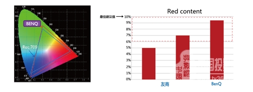 激光光源作為純色光源,從原理上來講,色彩表現(xiàn)是由于傳統(tǒng)汞燈的。而目前主流的激光光源多采用藍(lán)色激光配合熒光粉的解決方案,在一定程度上犧牲了色彩的準(zhǔn)度,因此一般純藍(lán)色激光投影機(jī)普遍偏藍(lán)紫色。而明基激光投影機(jī)在目前的熒光粉配方的基礎(chǔ)上,專門進(jìn)行了色彩的調(diào)校,使得紅色光強(qiáng)度接近德州儀器(TI))建議標(biāo)準(zhǔn)10%,符合Rec. 709色域規(guī)范,大大改善了偏色現(xiàn)象。伴隨雙色激光、三色激光光源投影機(jī)的問世,在色彩表現(xiàn)方面,未來激光光源投影機(jī)一定會(huì)優(yōu)于傳統(tǒng)光源。
