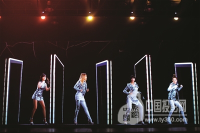 燈光暗下,黑漆的舞臺中央突然閃出一道白光,節(jié)奏明快的音樂轟然響起,韓國四人女子組合2NE1突然出現(xiàn)在我們8米開外。這個20見方的小小空間,小到四個性感俏皮的女孩,就在我們眼皮底下跳舞、唱歌,比價值2888元演唱會VIP票的位置還要近。近到我們可以仔細觀察每個女孩纖瘦的身材曲線,欣賞著她們縷縷秀發(fā)、細挺鼻梁,分辨她們穿戴的時尚韓版女裝和首飾。舞臺上的她們都非常神奇,伴著音樂舞蹈,她們一會像在《速度與激情》電影里一樣飆車,一會又被火焰燒身,還似乎練得降龍十八掌,雙掌一展,舞臺左右兩側(cè)的金屬墻塊被震得不斷搖甩。舞曲過半,黑衣人加入進來,跟“2NE1”齊舞。他可是真人,又是打招呼,又是斗舞……最后一聲炸響,一個音樂盒子成了一團煙霧,黑衣人在舞臺中央被“炸飛”出去。