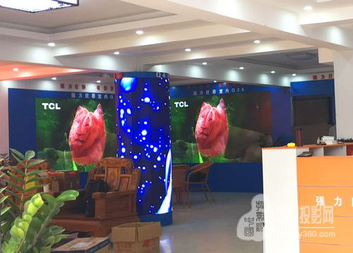 走進(jìn)浩彩旗艦店,迎面就是一面柱形屏繽紛閃耀,讓整間展廳都熠熠生輝。