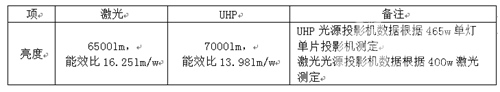在同樣的功率下激光的亮度輸出更高于UHP,以下為例: