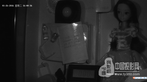 低照度項目,將攝像機置入暗箱,測試員手動降低照度,當照度計約為0.89Lux時,畫面自動日夜切換,繼續(xù)降低照度至“0.00”(實際約0.0005Lux)Lux(F1.5),畫面仍清晰明了,測試員切換強制彩色模式下,測得彩色最低在0.03Lux(F1.5)左右。