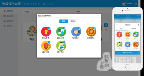 啟用“大師”十分簡單。老師們只需要將全班同學(xué)的名字導(dǎo)入班級優(yōu)化大師,即可馬上展開一局可供全班一同參與的“游戲”。在這里,孩子們各自頂著一個(gè)可愛的卡通頭像,并通過自己的表現(xiàn)來決定這個(gè)角色的排名——就像他們玩過的電子游戲那樣,優(yōu)異的表現(xiàn)像是積極回答問題、認(rèn)真完成作業(yè)、答案非常出色或有創(chuàng)意等,可以為他們帶來加分,欠佳的舉止如不交作業(yè)、堂上走神睡覺、無故打鬧惹事等,則會(huì)讓他們的積分下降。配合或歡快或沮喪的音效,一堂40分鐘的課程變得飛快,孩子們坐的筆直,眼睛炯炯有神地直視著老師——他們仿佛握著一個(gè)透明的搶答器,正期待著老師放出下一個(gè)任務(wù)。