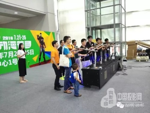 眾多參會人員正在體驗玩模擬搶擊火熱沸騰