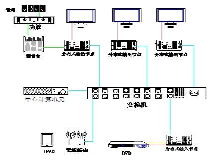 2、通過分布式中控功能,實現(xiàn)對DVD播放器和顯示器的控制;