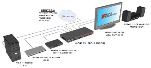 Hall Research新推出了一款超高性價(jià)比的多格式切換倍線器SC-1080R,支持(HDMI,VGA,YPbPr和CV)四種不同信號(hào)的輸入。SC-1080R可切換和倍線8種AV信號(hào)的輸入(包括3*HDMI,3*VGA,1*YPbPr和1 *Composite Video),可同時(shí)輸出3個(gè)信號(hào)(2*HDMI,1*VGA)。信號(hào)輸入支持多種PC和HDTV的分辨率(復(fù)合視頻輸入支持NTSC和PAL)。PC (VGA 至 WUXGA)或HDTV (YPbPr/YCbCr 從 480i 至1080p)都可以指定輸出格式和分辨率,便捷模擬和數(shù)字信號(hào)的輸出,獨(dú)立模擬和數(shù)字音頻的輸出。