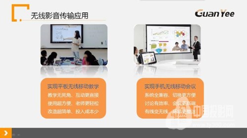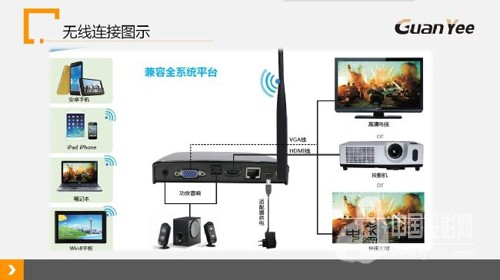 如今,信息化程度加快,移動學(xué)習(xí)終端的功能越來越強悍、價格越來越低廉,wifi等網(wǎng)絡(luò)連接方式越來越普及,于此GUANYEE無線影音傳輸設(shè)備為移動化無線教學(xué)的開展提供有力支持。