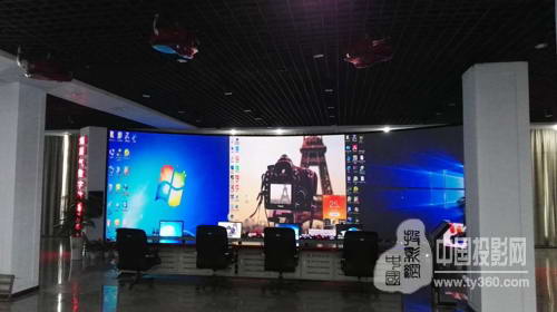 該公司展示廳需要實現(xiàn)120度弧形幕投影,投影幕布的尺寸為3.2m*12m。該展示廳由于使用環(huán)境的光干擾較弱,因此選用3臺iLEP-3C7X型激光投影機,亮度為6500流明,可完全滿足展示廳的使用要求。三臺投影機使用三通道融合,可實現(xiàn)畫中畫并且整體融合后的分辨率達到4600*1080 pixel。
