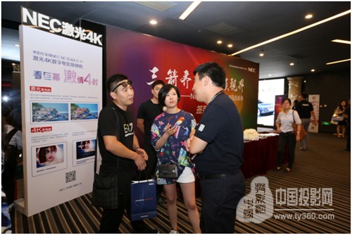 會議部分結(jié)束后,NEC還設置了自由參觀及交流的環(huán)節(jié)。通過播放片花讓到場嘉賓在真實影院環(huán)境中體驗NC1201L和NC1000C的放映效果,更加直觀地感受NEC電影放映機帶來的視覺饕餮盛宴。不論是2D畫面還是3D畫面都十分細膩、清晰,而且噪音極低, 讓嘉賓們在驚喜中感受到了NEC領先的技術優(yōu)勢。
