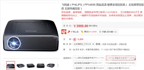 飛利浦PPX4935無線家用娛樂投影機(jī) 市場售價:2999元