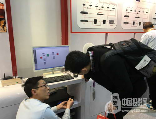 工作人員向來賓介紹QITUO數(shù)字網(wǎng)絡(luò)會議單元