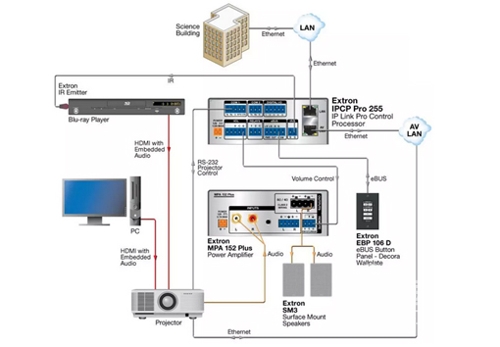 我們非常高興地推出了 IPCP Pro 255,這一帶有專用 AV 局域網(wǎng)端口的高性能 IP Link® Pro 控制處理器。它采用更高級的安全標(biāo)準(zhǔn)和千兆以太網(wǎng),確保了在標(biāo)準(zhǔn)網(wǎng)絡(luò)架構(gòu)上與多個(gè) TouchLink® Pro 觸摸屏兼容。其中的視音頻局域網(wǎng)端口專門用來控制本地視音頻設(shè)備,可避免外部干擾或入侵。 IPCP Pro 255 可與 Extron LinkLicense® 配合使用,能進(jìn)一步增強(qiáng) Extron Pro 系列控制系統(tǒng)的處理能力。在需要隔離控制的視音頻系統(tǒng)中,IPCP Pro 255 是控制多個(gè)設(shè)備和多種信號(hào)類型的理想之選。