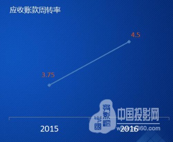 公司營運情況也十分良好,與上年同期相比有大幅提升:2016年經(jīng)營活動產(chǎn)生的現(xiàn)金流量凈額為1369萬元,2015年為-1529萬元;應(yīng)收賬款周轉(zhuǎn)率2016年為4.50,2015年為3.75。