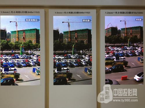 二代屏處理后的顯示效果(從左至右:二代P1.5屏,一代P1.5屏,一代P1.2屏)