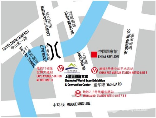 從展館南門(mén)出發(fā),步行至地鐵7號(hào)線或8號(hào)線耀華路4號(hào)口