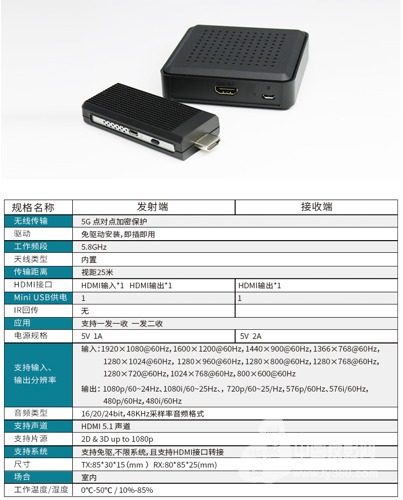 Ø高清無線:支持高清1080P 60HZ及3D格式輸出