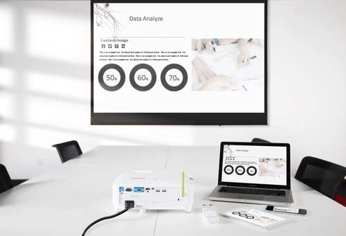 WIFPTV無線互動演示系統(tǒng)分為主機和按鍵兩部分,大部分用戶本身在會議室都備有液晶數(shù)字顯示屏或投影機,想達到無線傳輸顯示怎么辦呢?只需要將這臺主機與液晶顯示屏或投影機與WIFPTV主機相連,在筆記的本USB接口插上按鍵并按下,無線投屏效果立馬呈現(xiàn)。