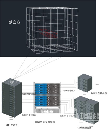 大視的LED處理器的無損處理,RGB444,支持多路4K,全同步等功能,使整個系統(tǒng)接近于完美。該系統(tǒng)支持36路 Pandoras box的媒體服務(wù)器高清信號,同時支持8路DP 4K超高分服務(wù)器的信號,36路輸出給LED發(fā)送卡,采用大視一臺12U機(jī)箱的LED處理器完成。整個系統(tǒng)可以在兩種服務(wù)器之間進(jìn)行切換。系統(tǒng)示意圖如下。