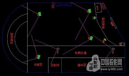 這是一個(gè)典型的演藝類(lèi)音樂(lè)吧,它和演藝酒吧最大的相似之處就是,都具有一個(gè)舞臺(tái),都會(huì)有節(jié)目表演。因此在擴(kuò)聲設(shè)計(jì)上,一定是采用集中式擴(kuò)聲法,最能保證清晰度和舞臺(tái)定位感。而他們的不同之處在于,音樂(lè)(餐)吧不完全以演出為主,小小的舞臺(tái),三兩個(gè)樂(lè)手,淡淡的品味,所以并不需要特別大的聲壓覆蓋,只要在保證定位和清晰度的情況下,讓聲音盡可能均勻覆蓋則可達(dá)到不吵鬧、不平淡,不影響客人正常交流,能給人有韻味且有聲有色的聽(tīng)覺(jué)享受。