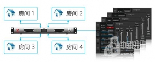 4個(gè)房間只需1臺(tái)設(shè)備,輕松實(shí)現(xiàn)每個(gè)房間獨(dú)立自動(dòng)混音多種混音模式可選,可設(shè)置不一樣的混音規(guī)則多臺(tái)設(shè)備自由組合和級(jí)聯(lián)