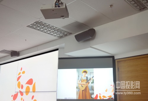 為了方便會議室兩側(cè)的與會者觀看,主屏幕的兩側(cè)還設(shè)置了兩臺索尼商務(wù)投影機(jī)投射畫面。