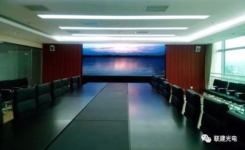 此外,聯(lián)建光電還為長沙銀行總部三樓貴賓廳打造了一塊高端小間距LED會議屏,依舊采用貼墻前維護設計,屏幕點亮后,播放流暢穩(wěn)定,色彩鮮艷,畫質(zhì)細膩清晰,為古色古香的貴賓廳增添了一抹靚麗的科技色彩。 長沙銀行的領導在驗收該項目時,也不禁對本項目完美的顯示效果發(fā)出了贊嘆,由聯(lián)建光電打造的高端小間距LED顯示屏可謂是貴賓廳的點睛之筆。