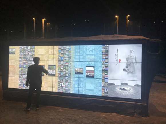 此展館采用了49寸的液晶拼接屏,3X6的規(guī)格實(shí)現(xiàn)了超大畫面顯示;外設(shè)紅外框觸控增強(qiáng)了人與機(jī)的實(shí)時(shí)交互。