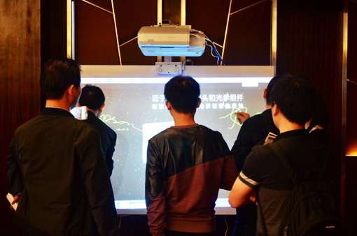 現(xiàn)場(chǎng),愛(ài)普生專為教育行業(yè)設(shè)計(jì)的激光超短焦交互投影機(jī)CB-710Ui進(jìn)行了應(yīng)用展示,來(lái)賓可現(xiàn)場(chǎng)操控體驗(yàn),感受精彩畫面效果以及流暢書寫質(zhì)感。