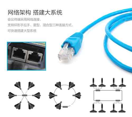 會議終端采用網(wǎng)線連接,與服務(wù)器連接后,支持環(huán)形手拉手、星型、混合型三種連接方式,可快速搭建大型系統(tǒng)。