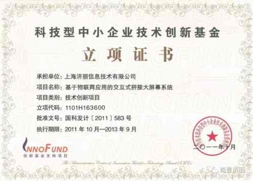 【國家科技部創(chuàng)新基金立項(xiàng)證書 】