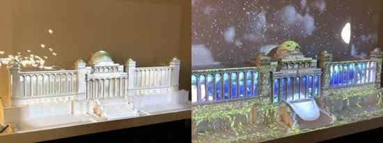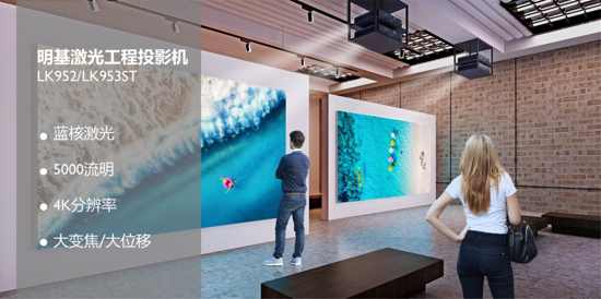 3D Mapping投影主要透過音視頻特效還原呈現(xiàn)。在會議現(xiàn)場,展示的是一個縮小版建筑立面模型的mapping,使用LK953ST投影機,該機型達(dá)到亮度5000lm,分辨率3840*2160,投射比0.8,支持大范圍鏡頭位移,在實際應(yīng)用中可通過拼接融合的方式實現(xiàn)真實建筑立面的mapping投影秀,這樣的方案目前已廣泛應(yīng)用于主題樂園,博物館,展覽館,規(guī)劃館等,打造出壓軸級別的樂園沉浸式項目。