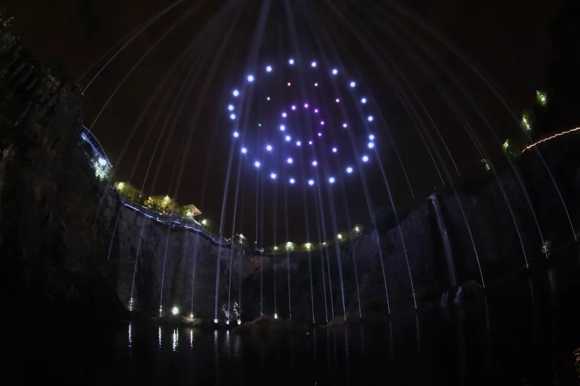 “深坑酒店”即上海佘山世茂深坑酒店,酒店深入地下88米,是目前世界海拔最低的酒店。據(jù)說在酒店房間能就能看到飛流直下的瀑布、空中花園、巖壁景觀和坑底積水。如果住在二層的水底客房,還可以隔著玻璃墻欣賞水族館,個性的空間設(shè)計,充分打造視覺多樣性。 除了酒店本身的建筑亮點,夜晚的亮化設(shè)計也極具創(chuàng)意。酒店開業(yè)當(dāng)天,燈光和無人機(jī)為其助陣。6臺31,000流明松下激光光源工程投影機(jī)打造傳奇水幕秀,在這有著天然回音結(jié)構(gòu)的環(huán)形深坑中,配合無人機(jī)燈光陣型表演,水、陸、空三維演繹回旋激蕩的創(chuàng)想藝術(shù)空間。