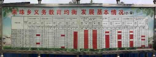 周末在果珠鄉(xiāng)中心校和老師們磨課,看見校園里的宣傳欄有這樣一張表格——“果珠鄉(xiāng)義務(wù)教育均衡發(fā)展基本情況”;叵肫疬@幾天在鄉(xiāng)里看到的“控輟保學(xué)”標(biāo)語,讓我第一次認(rèn)真地去思考教育均衡這個命題。