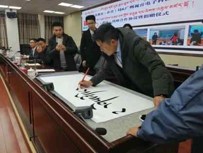 丁青縣教育局劉局長與希沃公益行代表為巴達鄉(xiāng)中心小學頒發(fā)了“希沃公益支教項目學校”的牌匾。巴達鄉(xiāng)中心小學的羅松江村校長現(xiàn)場為希沃作了藏文書法創(chuàng)作,用藏文寫下了“希沃”。在藏文中,“希沃”的音譯意思是 “知識的光芒”。相信通過駐校交流、軟件培訓、現(xiàn)場磨課、集中培訓等方式,此番公益之行能借助教育信息化的力量,為雪域高原上的師生們點亮知識的光芒。